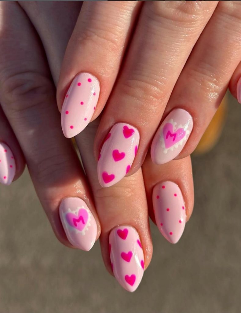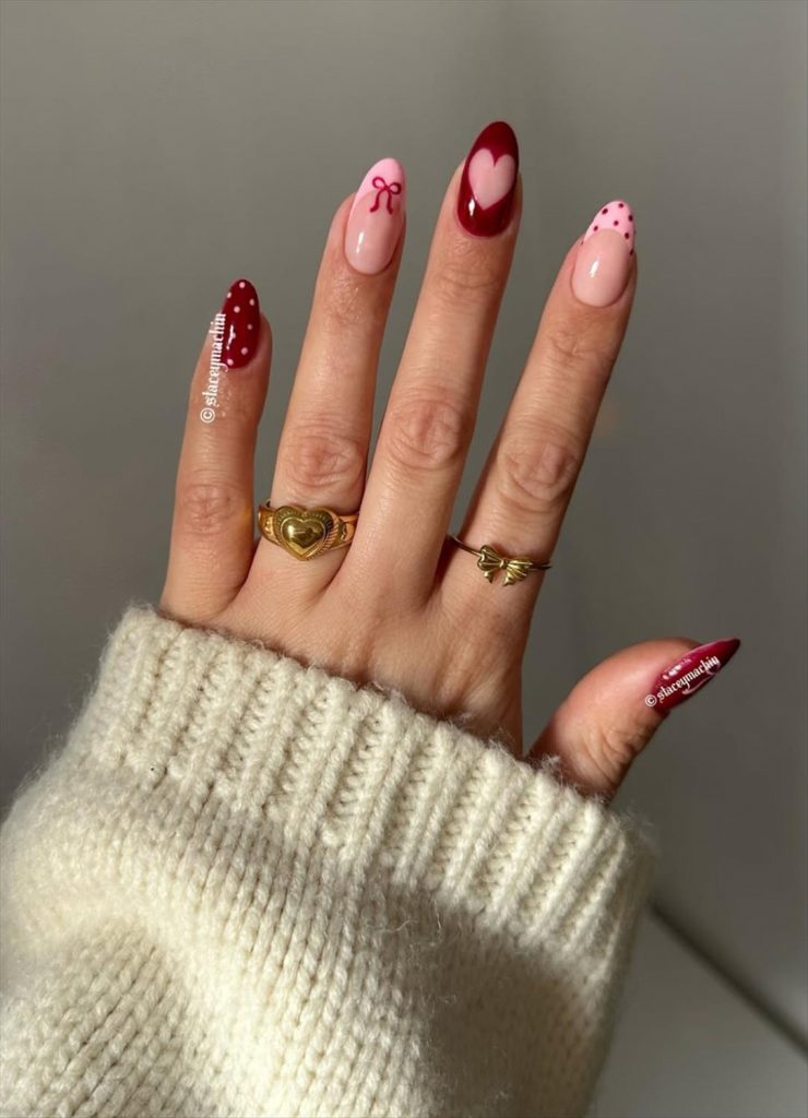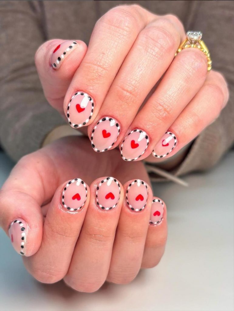 - Heart-pattern Valentine nails