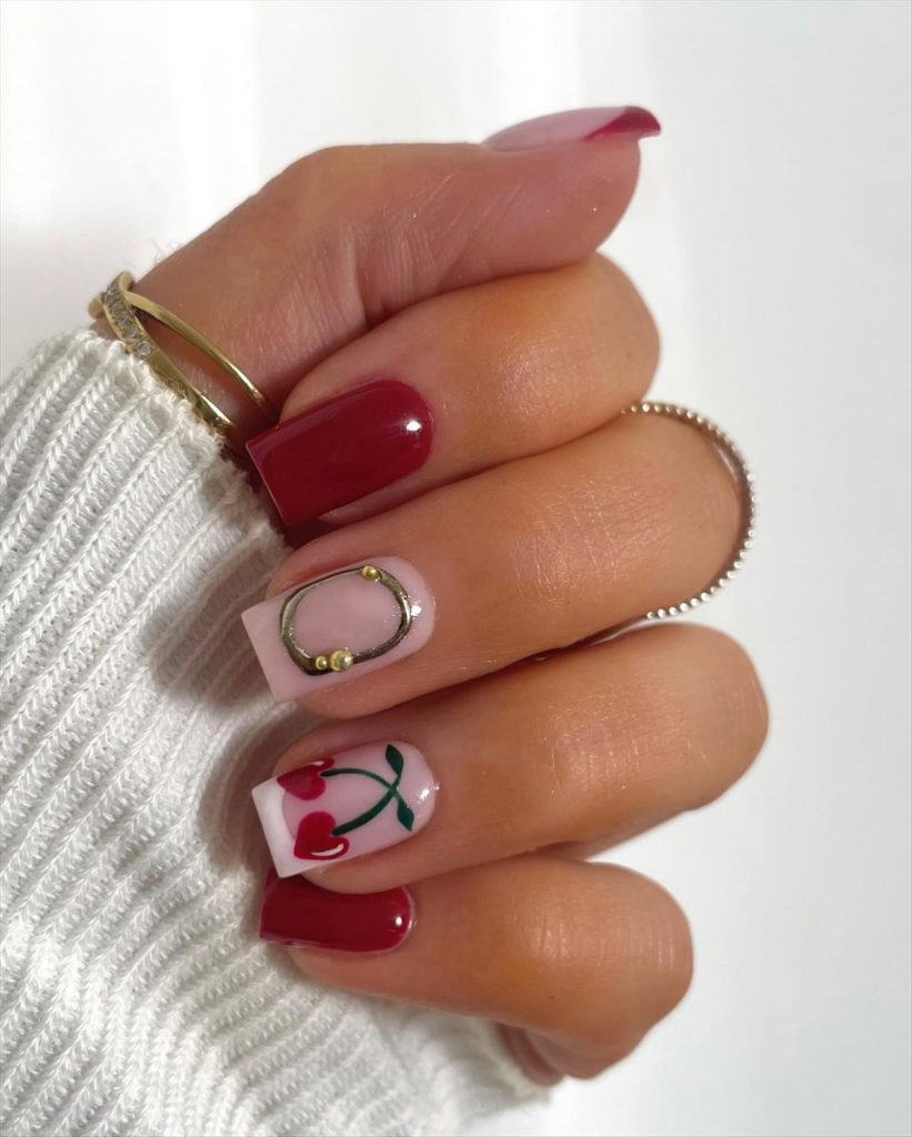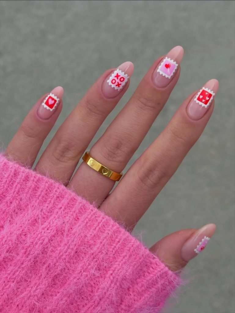 Popular cute Valentine nails include: