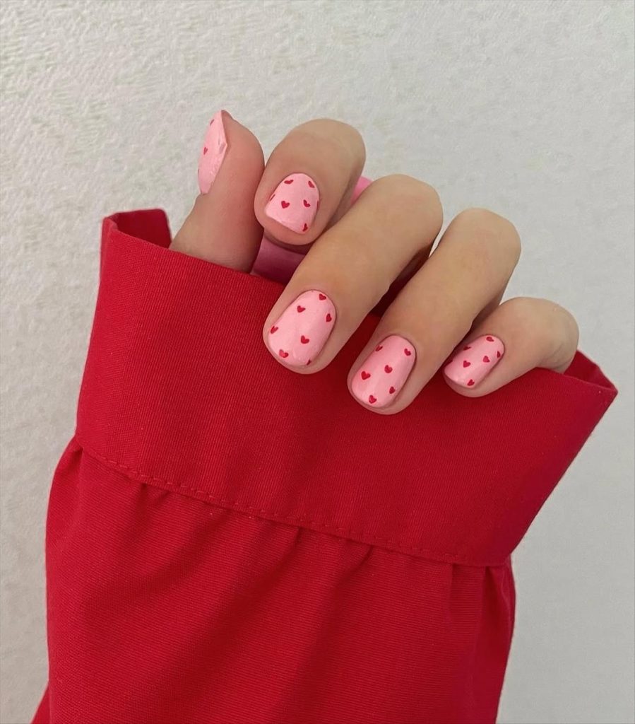 - Matte pink Valentine nails