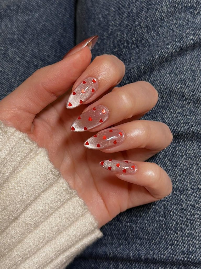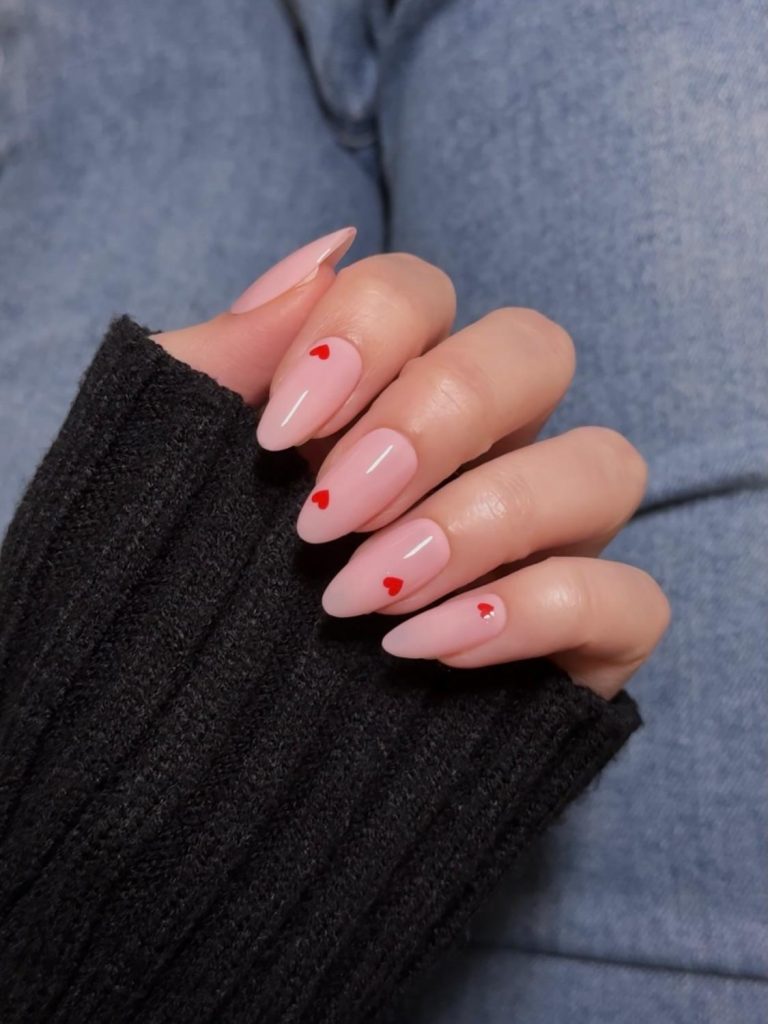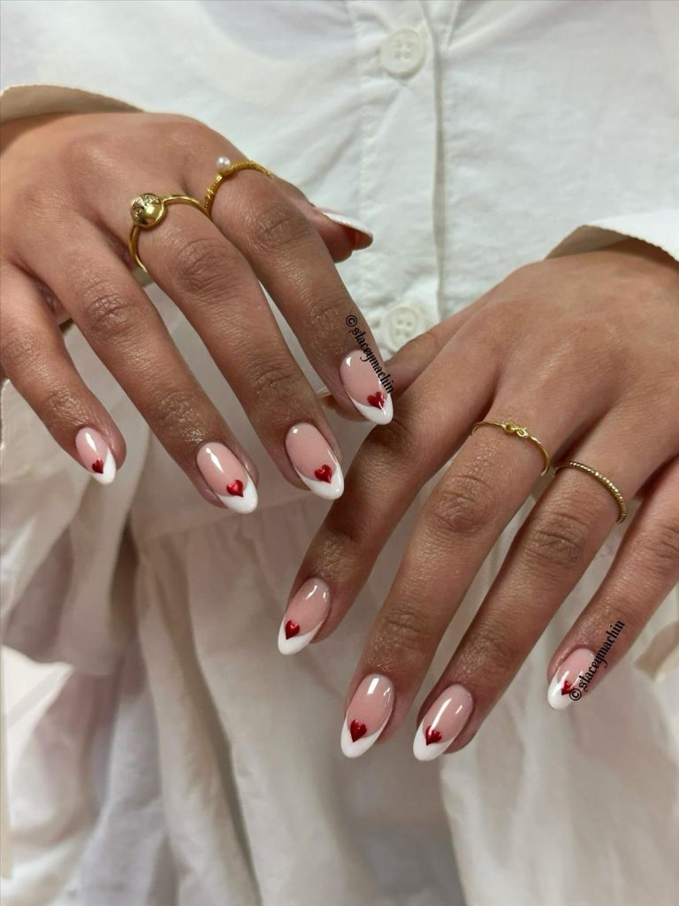 Neutral Valentine nails are trending strongly for readers who prefer classy and minimal manicures. Milky white, nude beige, and sheer pink nails with delicate heart details are ideal for elegant Valentine’s Day looks.